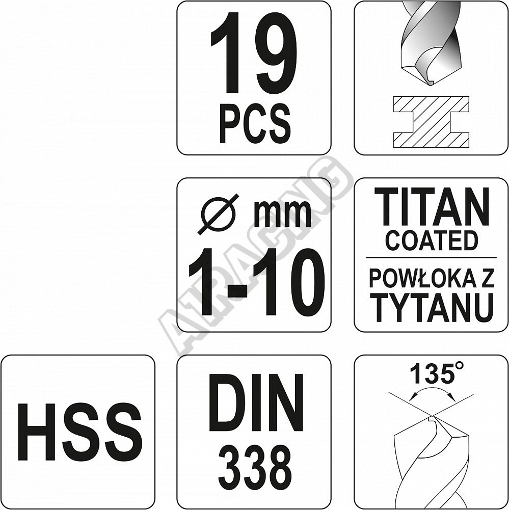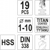 Sada vrtáků do železa HSS-TiN 19ks 1-10mm