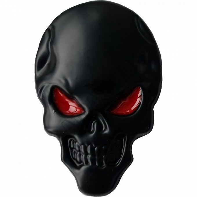 Samolepící kovový znak LEBKA (černá) 35x50 mm Plastová černá část s kovovým logem. Připevnění pomoc
