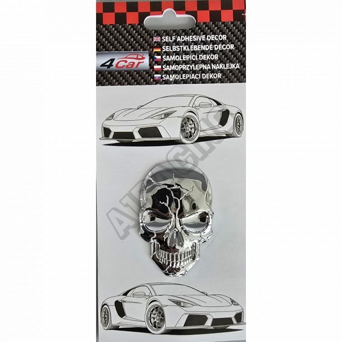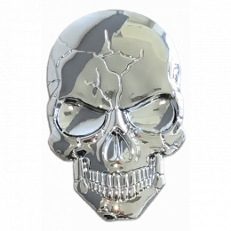 Samolepící kovový znak LEBKA (chrom) 43x68 mm Plastová černá část s kovovým logem. Připevnění pomoc