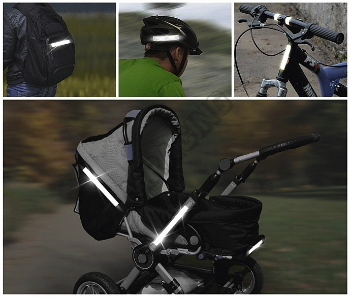 Výstražný reflexní doplněk k nalepení, dobře viditelný na velkou vzdálenost. Ideální k nalepení na kočárek, kolo, dětskou tříkolku, školní brašnu, na helmu či jiný předmět.