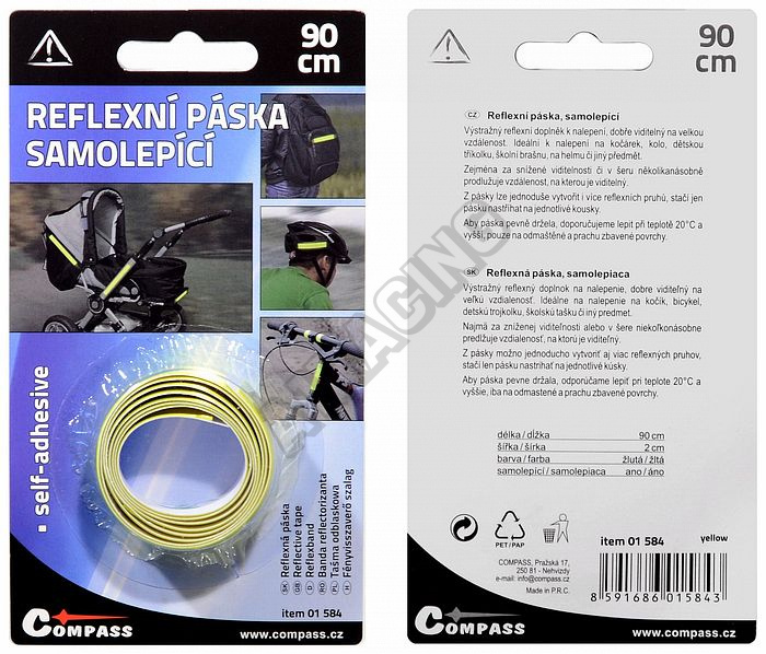 Samolepící páska reflexní žlutá 2cm x 90cm Výstražný reflexní doplněk k nalepení, dobře viditelný n
