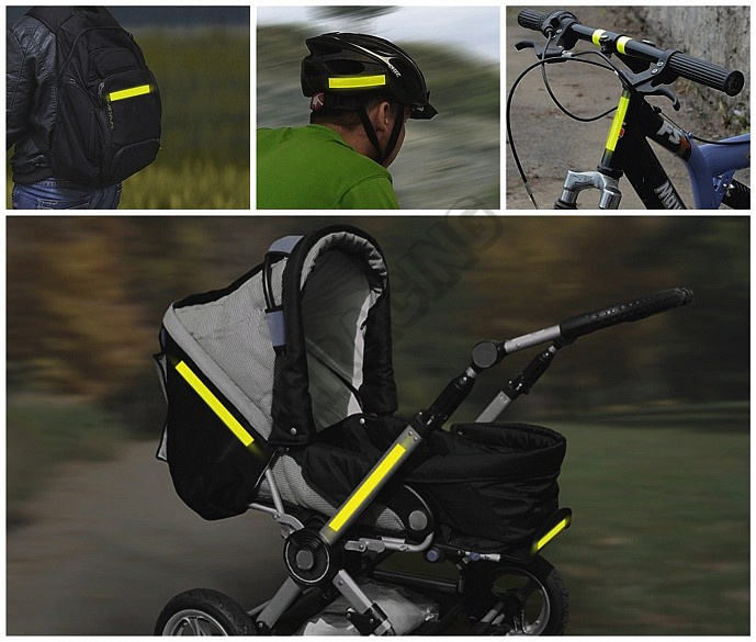 Výstražný reflexní doplněk k nalepení, dobře viditelný na velkou vzdálenost. Ideální k nalepení na kočárek, kolo, dětskou tříkolku, školní brašnu, na helmu či jiný předmět.