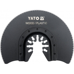 Segmentový pilový list z uhlíkové oceli HCS s upínacím systémem OIS, pro řezání dřeva, dřevotřísky, plastů a podobných materiálů. Upínání OIS, dovoluje tento nástroj použít v oscilačních přístrojích značek, jako například Fein, Bosch, Makita, Miwaukee, AEG, Skil, Einhell, Yato, PowerUp, Extol, Worx, Multi Master, Rockwell a mnoho dalších. Pracovně lze tento nástroj využít například pro ponorné a rovinné řezy do masivního dřeva například při montáži větracích mřížek, zarovnání dřeva, zaříznutí vyčnívajícího čepu dřevěného spoje, zkracování plastových trubek a podobně.