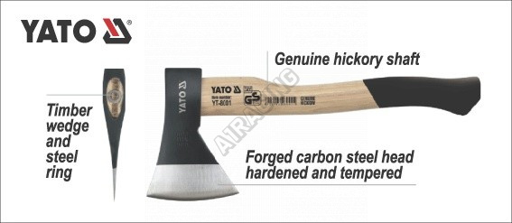 Hlava a její ostří bylo precizně vykováno z kvalitní uhlíkaté oceli, která byla po zpracování kalená a temperovaná pro ještě lepší vlastnosti. Proti vyklání je opatřena dřevěným klínem spolu s ocelovým kroužkem.