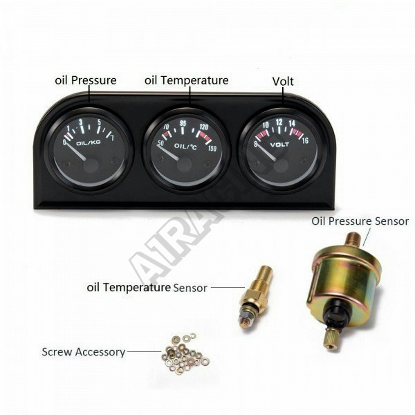 Sestava budíků 3v1 KET teplota a tlak oleje, volmetr33.23 EUR