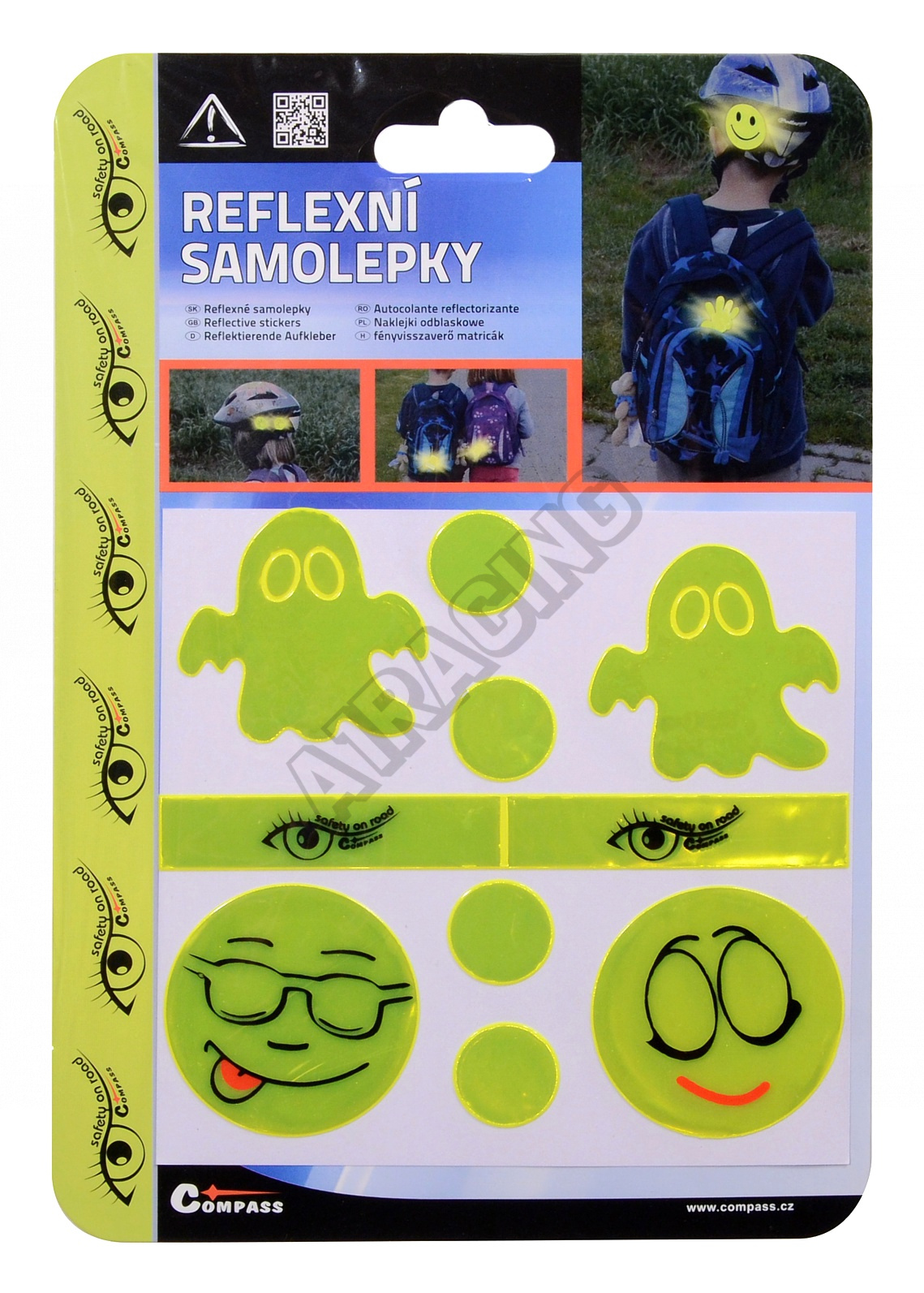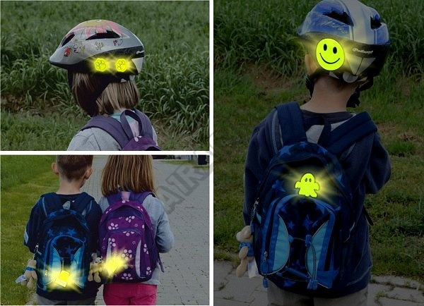 Moderní, zábavné a především na velkou vzdálenost dobře viditelné samolepky, vhodné i pro děti. Zejména za snížené viditelnosti či v šeru několikanásobně prodlužují vzdálenost, na kterou řidič zpozoruje chodce.