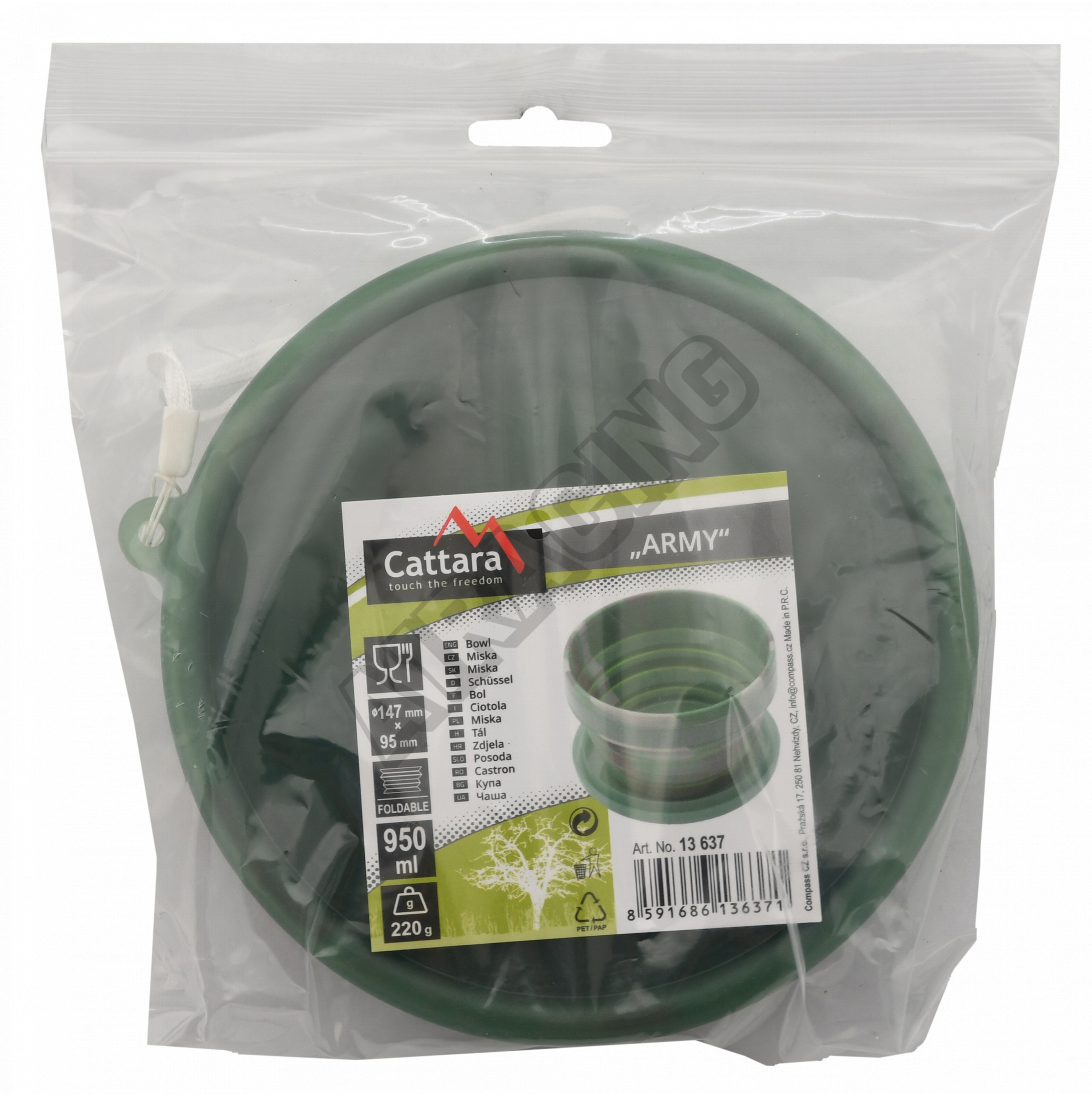 Praktická skládací miska k snadnému přenášení, vhodná pro outdoor využití.