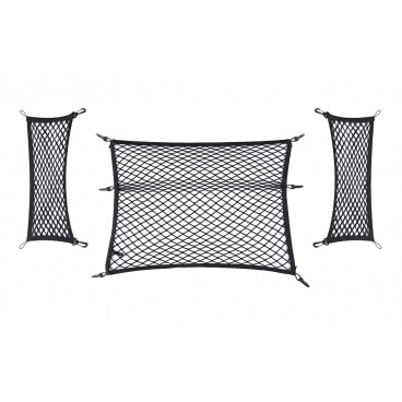 Originální třídílný síťový program pro zabránění pohybu předmětů v zavazadlovém prostoru. Umístění pomocí háčků.