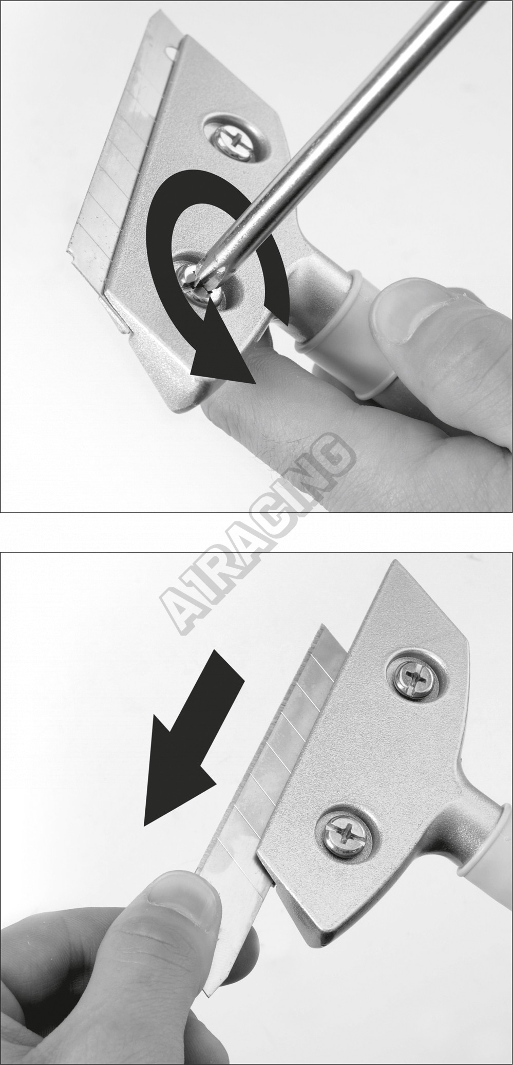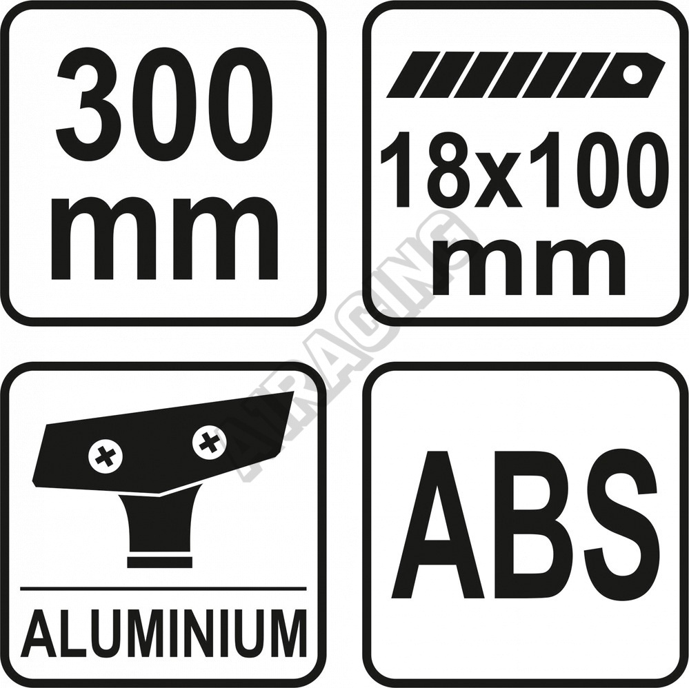 Škrabka s vyměnitelnou čepelí, rozměry 18 x 100 mm, vhodná pro typické lomené čepele nože namontované na držáku z hliníku.