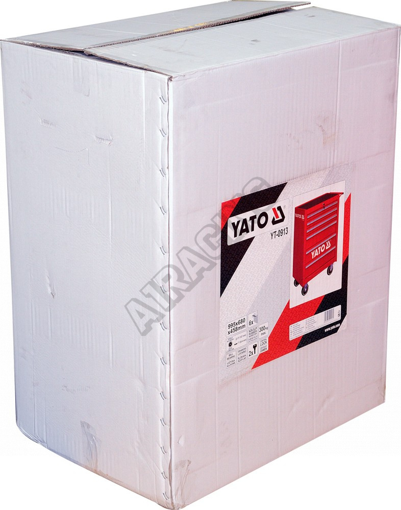 Dílenská skříňka značky YATO, vybavena 6 zásuvkami s kuličkovými ložisky s centrálním zamykáním.