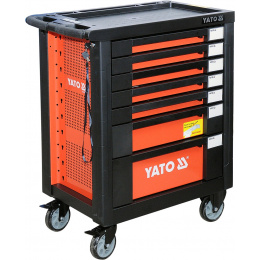 Dílenská skříňka nástrojů značky YATO, vybavena 7 zásuvkami s kuličkovým ložiskem, 5 horních zásuvek