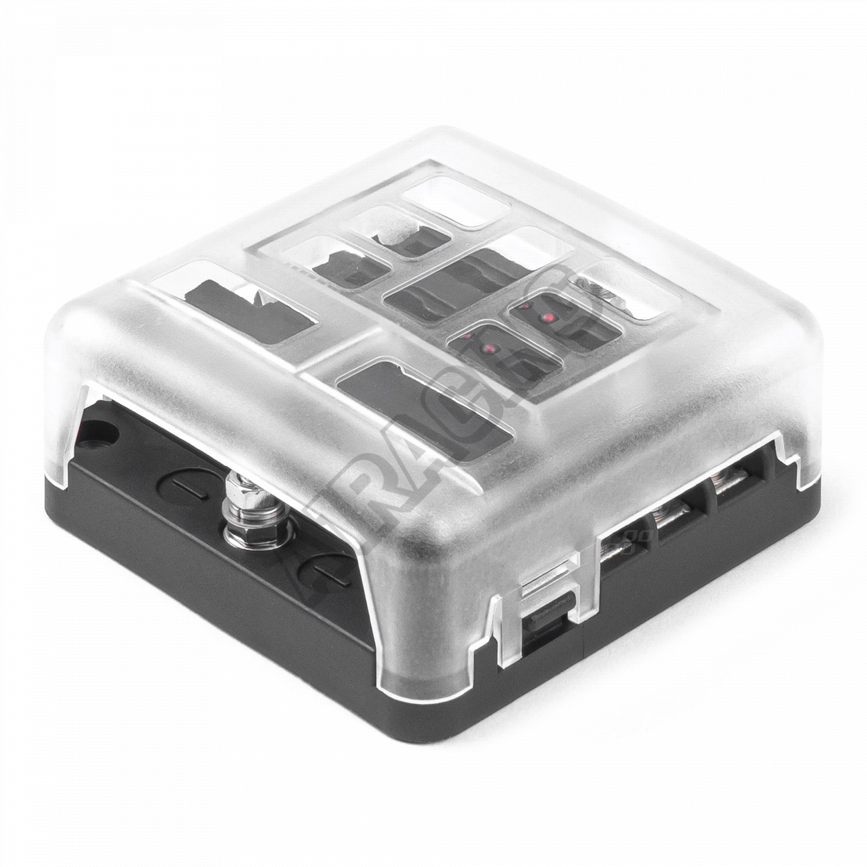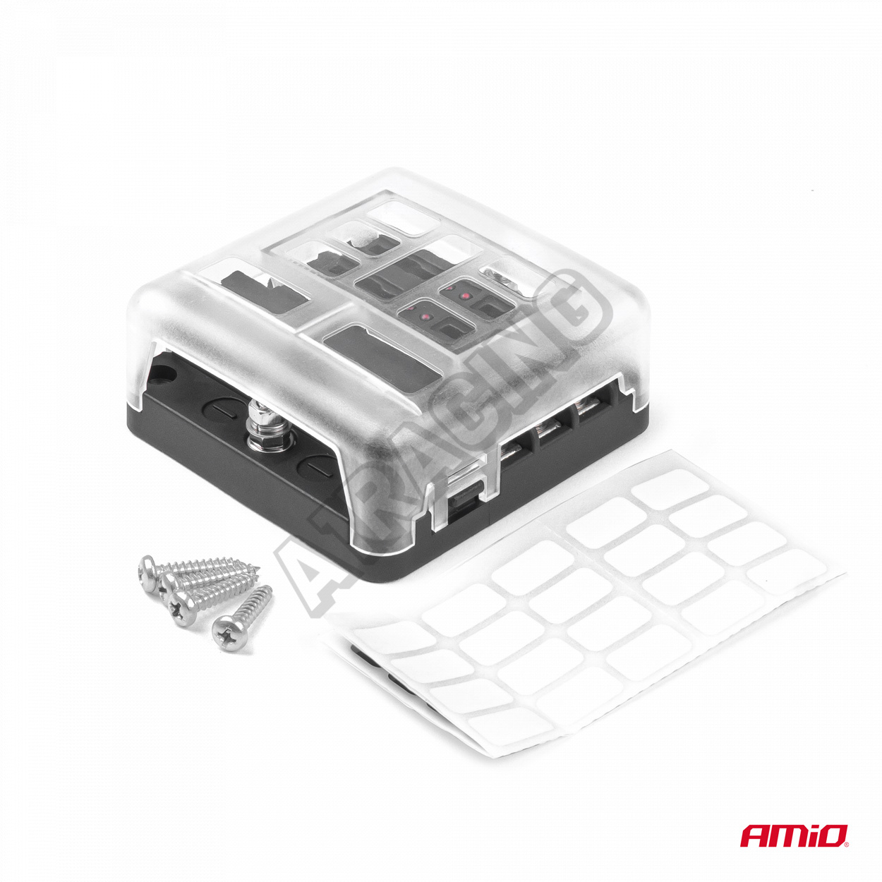 Univerzální 6-obvodová pojistková skříňka plus navíc zemnící lišta. V případě přepálení pojistky se rozsvítí červená LED dioda umístěná u každé zásuvky, což umožňuje rychle a bez problémů zjistit, ve kterém obvodu je závada.