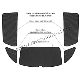 Sluneční clony sada - zadní dveře, zadní okna, páté dveře, Škoda Fabia II Combi Sada - 5-ti dílů. C