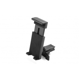 Praktický držák multimédií spolu s adaptérem do hlavové opěrky z nabídky ŠKODA Originální příslušenství. Je možné také zacvaknout do otvoru ve sklopené loketní opěrce zadních sedadel. Použití jak ve vertikální, tak i v horizontální poloze. Vysoká stabilita a pevnost. Velikost lze měnit dle rozměrů použitého tabletu v rozmezí od 115 do 195 mm. Maximální povolené zatížení je 750 g. Plynulé otáčení v rozsahu 360°, naklápění dopředu, dozadu i do stran až o 30°. Dá se tak snadno nastavit optimální poloha pro každého.