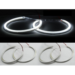 Tyto SMD Angel Eyes 4 krouzky jsou určeny výhradně pro BMW E46 bez xenon světel, mají 130 diod na jednom kroužku, barva osvitu je 6000 K jako je u xenon světel, všechny 2+2 kroužky mají vnější 145 a 132 mm a vnitřní 128 a 115 mm, kabeláž s relém je součástí balení, díky 130 SMD diodám těsně vedle sebe mají krásný jednolitý světelný kruh, čehož nedosáhnou ani CCFL kroužky,