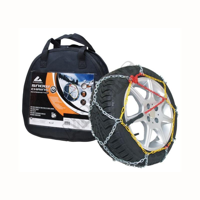 Sněhové řetězy 12 mm, velikost 100 se stopou X, zajíšťující správné boční vedení při jízdě v hlubokém sněhu (vozidlo má stabilní směr a stopu) pro použití do rychlosti 50km/h. Certifikát kvality GS/TÜV. Montáž řetězů trvá cca 2-4 minuty, montáž na stojícím vozidle, bez najíždění. Rozměry pneumatik na které lze tyto sněhové řetězy použít: 205 / 75 x 14 215 / 70 x 14 215 / 75 x 14 225 / 70 x 14 235 / 60 x 14 245 / 60 x 14 195 / 75 x 15 195 / 80 x 15 205 / 70 x 15 205 / 75 x 15 215 / 65 x 15 215 / 70 x 15 225 / 60 x 15 230 / 60 x 15 235 / 55 x 15 255 / 45 x 15 205 / 60 x 16 205 / 65 x 16 215 / 55 x 16 225 / 50 x 16 235 / 50 x 16 245 / 45 x 16 215 / 50 x 17 215 / 55 x 17 225 / 50 x 17 245 / 40 x 17 215 / 40 x 18 225 / 40 x 18 225 / 45 x 18 255 / 35 x 18 205 x 14 215 x 14 195 x 15 205 x 15 890 x 15 FR78 x 15 SR78 x 15 220 / 55 x 390 230 / 55 x 390 240 / 55 x 390 240 / 45 x 415 225 / 40 x 475