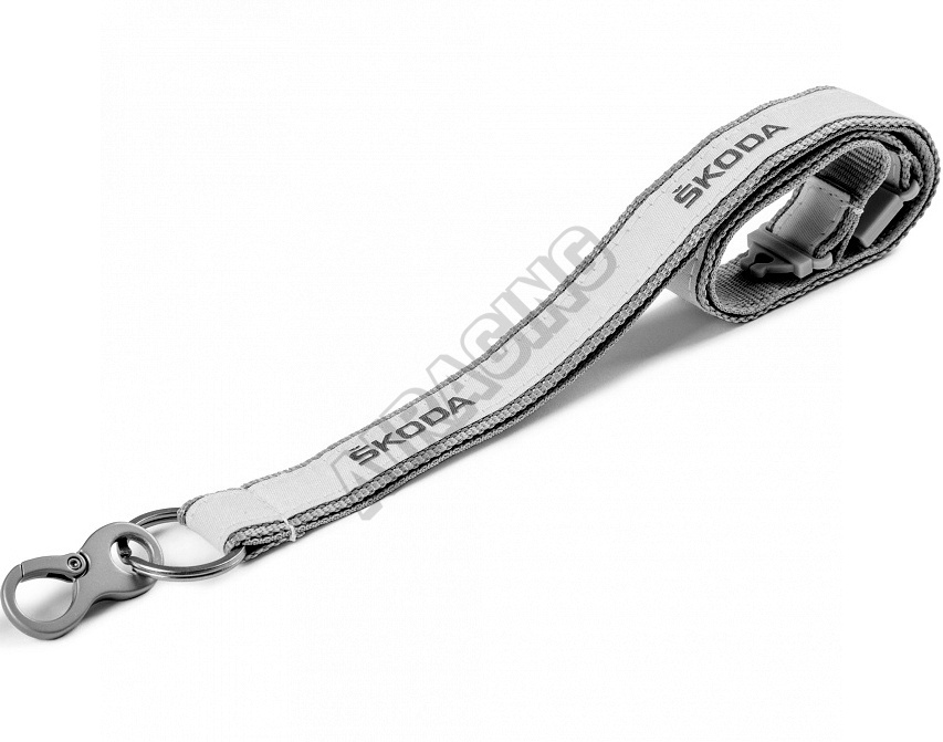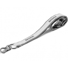 Šedá šňůra pro spolehlivé připnutí klíčů od auta nebo od domu. Šňůra má po celé své délce reflexní proužek a vytkané logo ŠKODA. Ve spodní části je zakončená kovovým kroužkem pro jednoduché navlečení klíčů. Šedou šňůra má za krkem bezpečnostní sponu.
