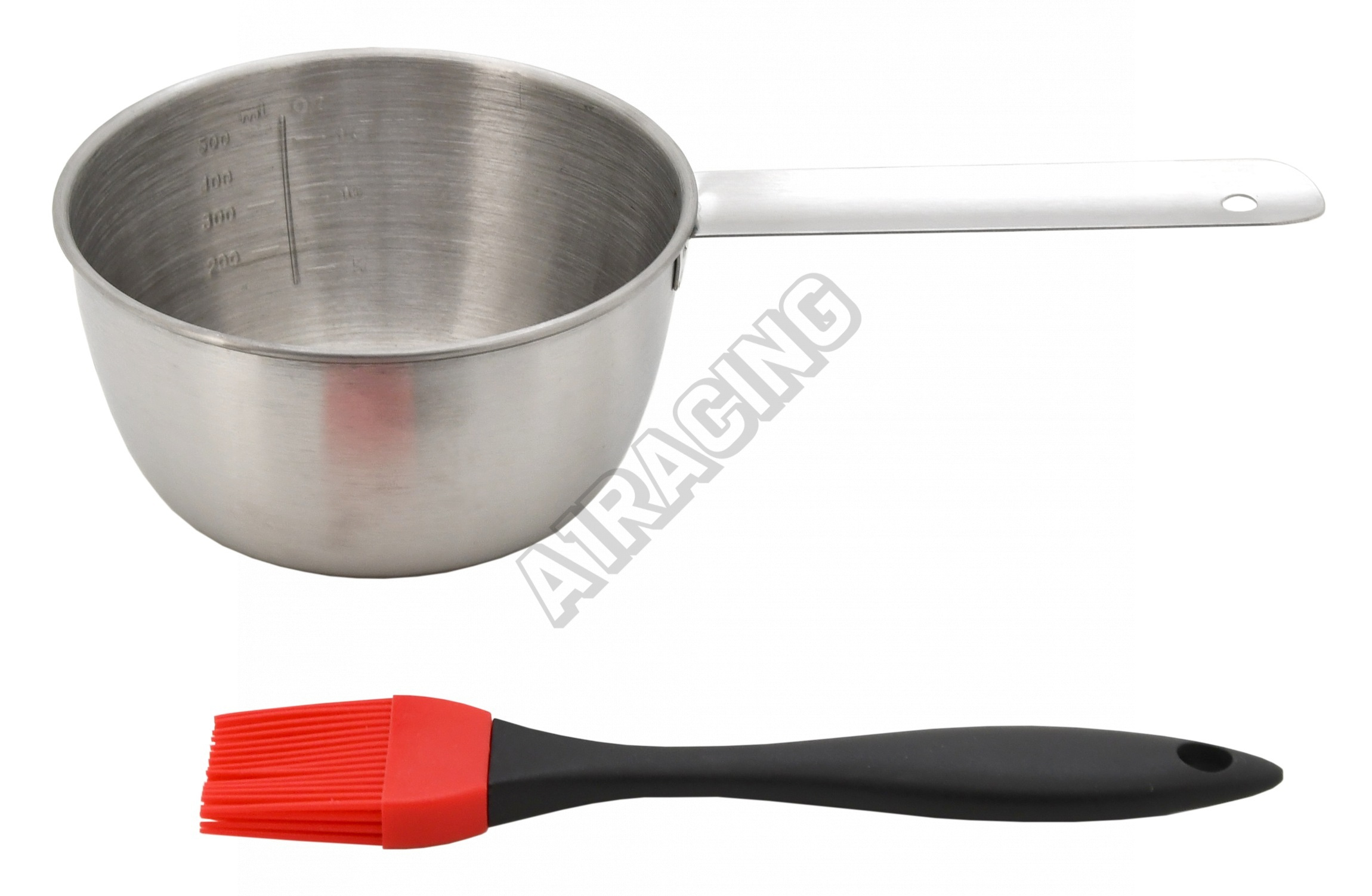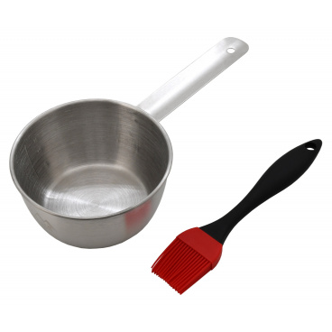 Sada je složena z nádoby z nerezové oceli, nabízející objem až pro 500 ml marinády a štětcem se silikonovými třásněmi.