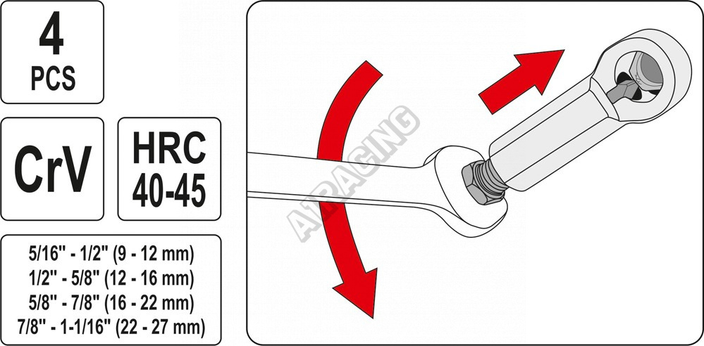 V soupravě jsou 4 odstupňované hlavice pro demontáž matic od 9 - 27 mm.