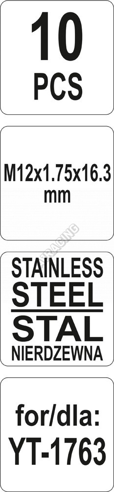 • Pro závit M12 x 1,75 • Délka závitu 16,3 mm • Volně průchozí • Nerezová ocel • Balení 10 kusů