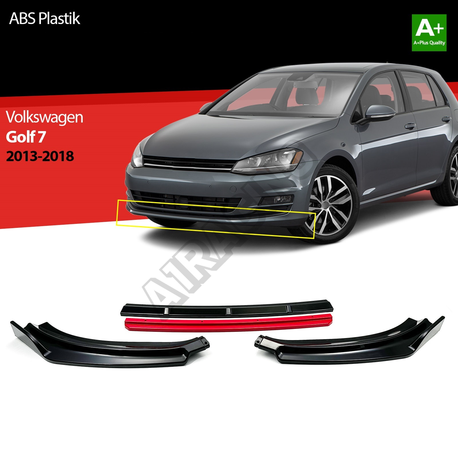 Spoiler pod přední nárazník VW GOLF VII 2012-17 černý lesklý Materiál : pružný plast ABS v lesklém