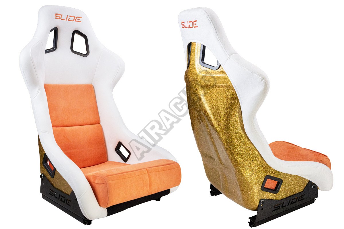 Sportovní křeslo SLIDE KS2 Premium Bílá Oranžová Velur & Oranžový Třpyt