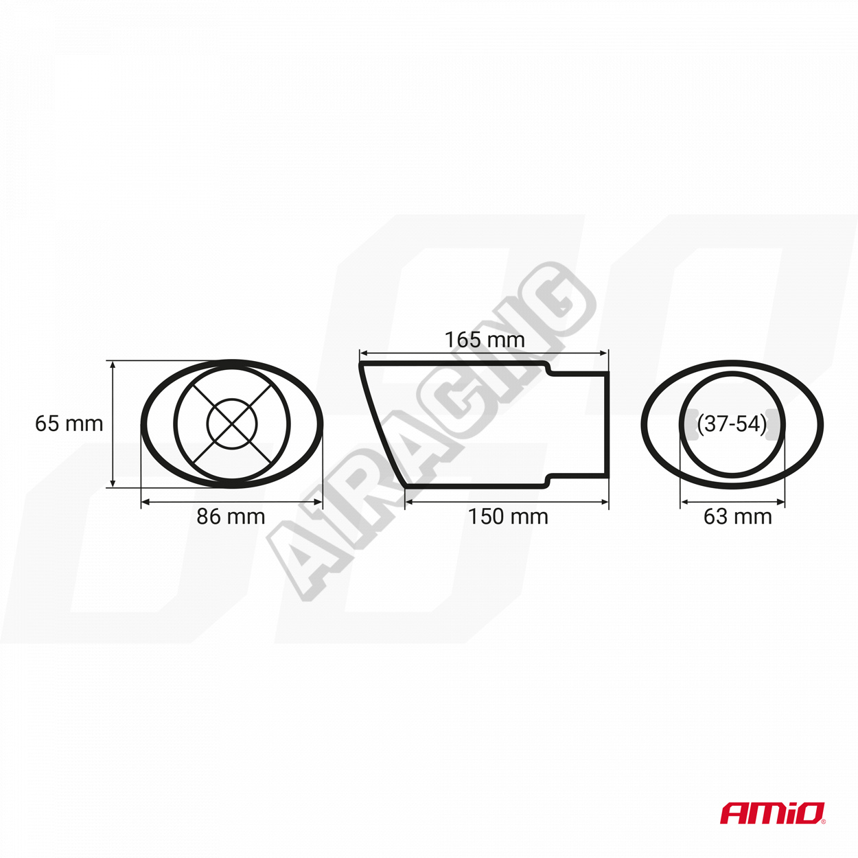 Efektní titan provedení s dvojitým pláštěm koncovky proti přehřátí horní vrstvy, délka 165 mm, vnější průměr koncovky 86x65 mm, průměr pro uchycení je 37-56 mm na spony. Pokud by jste chteli koncovku navařit, tak může být použita až pro průměr výfukové trubky 60 mm.
