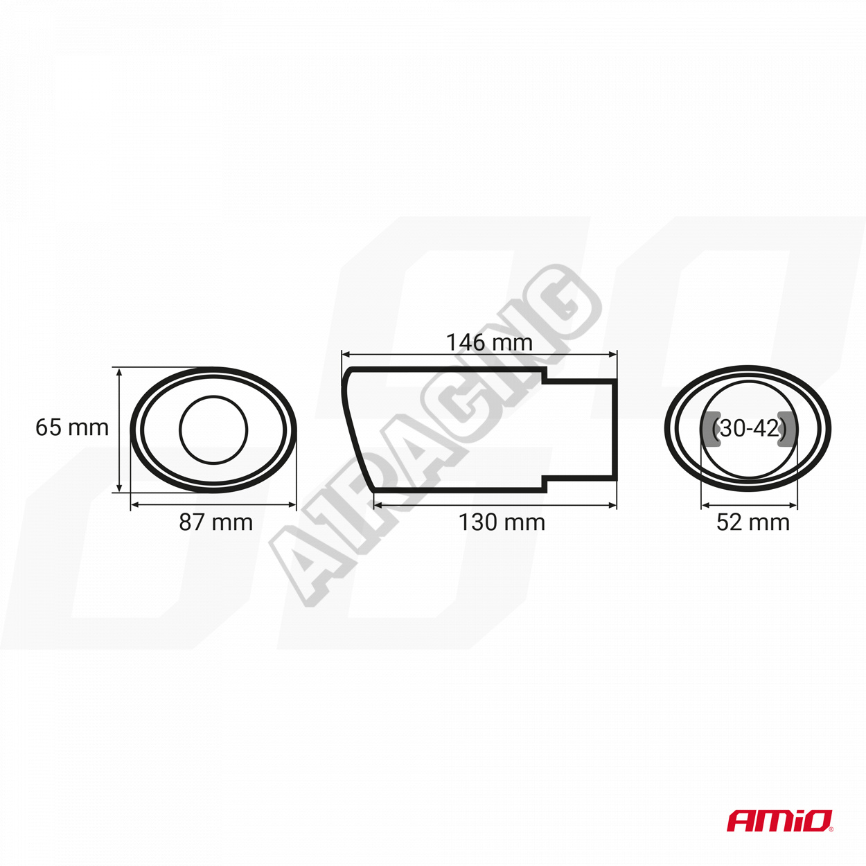 Koncovka výfuku: Materiál: nerez Délka koncovky:150 mm Průměr koncovky: 86 x 65mm Max.montážní průměr 30-42 mm