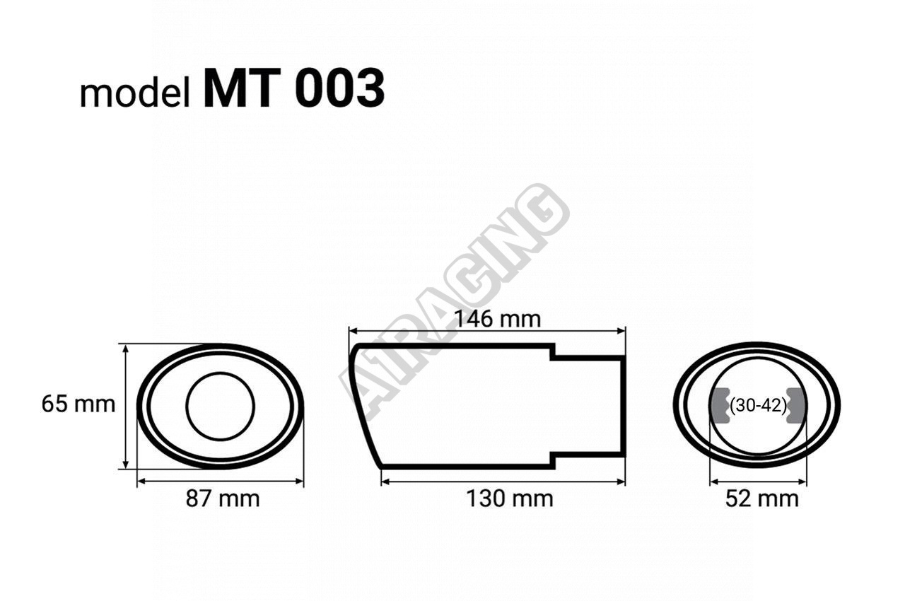 Koncovka výfuku: Materiál: nerez Délka koncovky:150 mm Průměr koncovky: 86 x 65mm Max.montážní průměr 30-42 mm