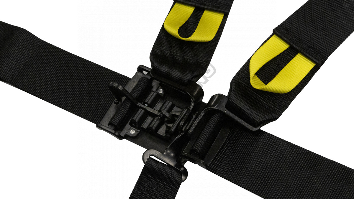 Sportovní bezpečnostní pásy 5bodové, vyrobené z tkaniny a částečně z plastu.Šířka pásu - 3" Po zapnu