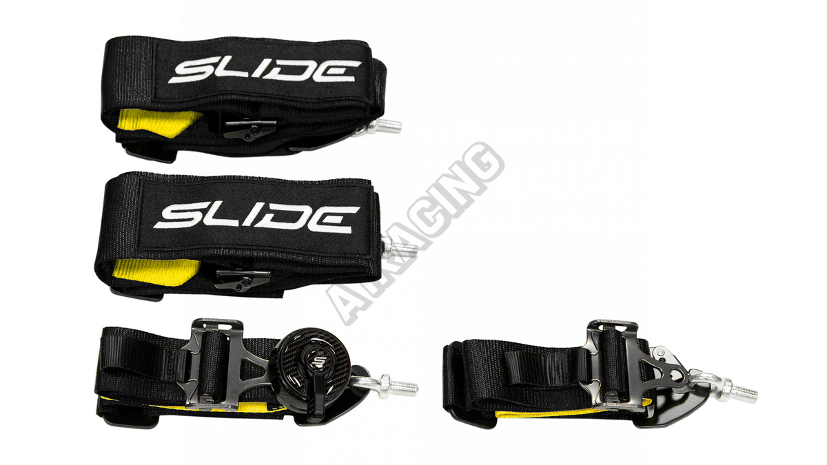 Sportovní bezpečnostní pásy SLIDE 4-bodové, vyrobené z tkaniny a částečně z plastu.Šířka pásu - 3"Po