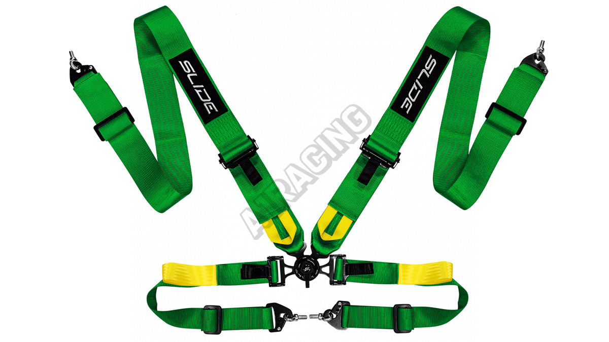 Sportovní bezpečnostní pásy SLIDE 4-bodové, vyrobené z tkaniny a částečně z plastu.Šířka pásu - 3"Po
