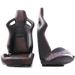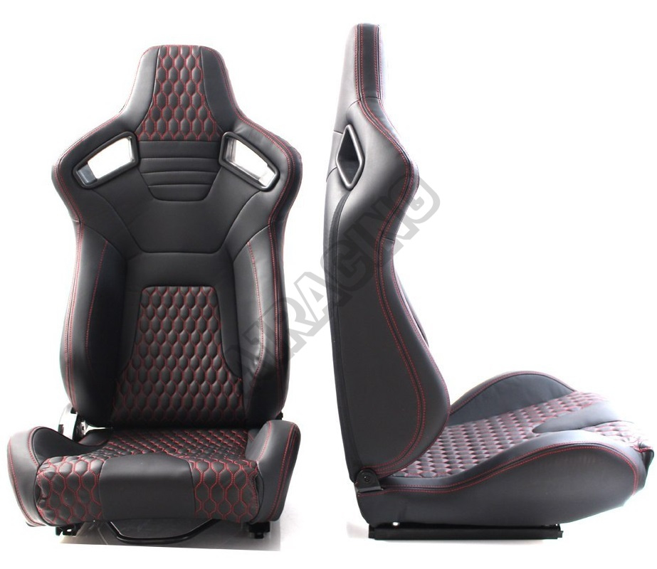 Velmi propracovaná sportovní polohovatelná sedačka v umělé kůži s červeným prošitím, které můžete vidět u drahých supersportů. Součástí balení jsou i spodní polohovatelné lyžiny pro posuv. Rozměry sedačky jsou v galerii fotek. Cena je za 1 ks