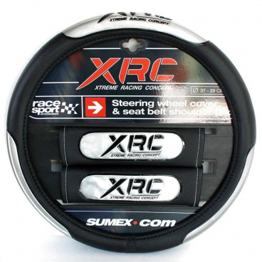 Sportovní potah volantu + návleky pásů Race Sport XRC Černý potah volantu se stříbrným půlkruhovým
