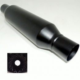 Určeno pro montáž místo katalyzátoru nebo středního mezitlumiče, maximálně navyšuje průchodnost výfukových plynů, tím dochází k navýšení výkonu vašeho auta, nerez provedení, délka 42 cm, samotné tělo je dlouhé 32 cm, průměr těla 9 cm, průměr potrubí 54 mm vnější, vnitřní průměr je 51 mm, ostrá část šupin musí směřovat směrem k zadnímu výfukovému tlumiči