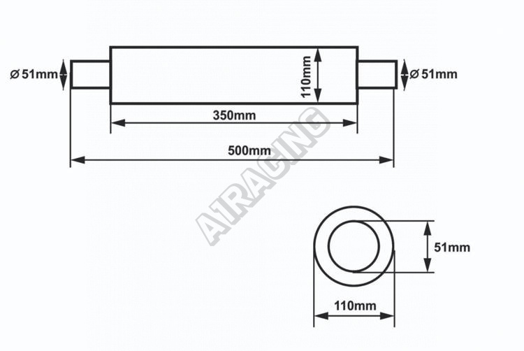 Délka těla 35 cm, Celková délka 50 cm, Šířka těla 11 cm, průměr vstupu je uveden vnější průměr 54, 60, 67, 73 a 79 mm. Vnitřní průměr je o 3 mm menší.