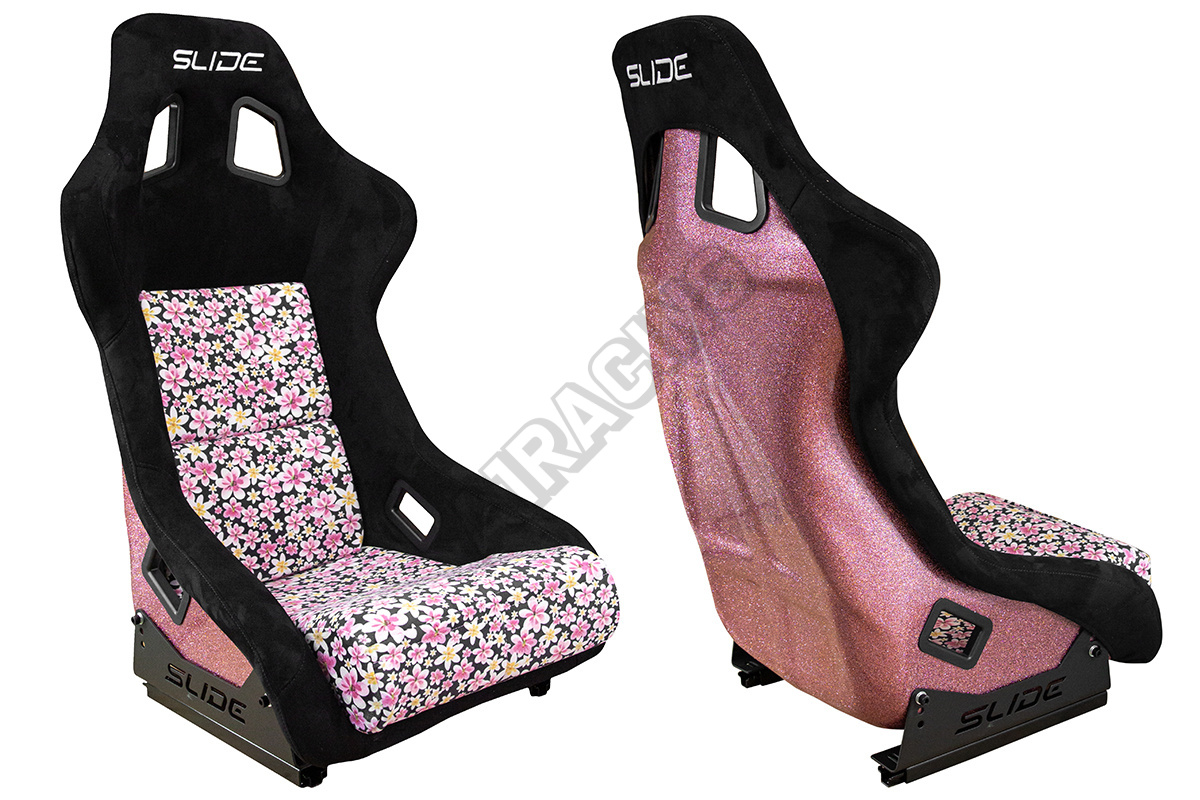 Sportovní skořepina SLIDE KS2 Premium Black & Flowers Velur Light Pink Glitter