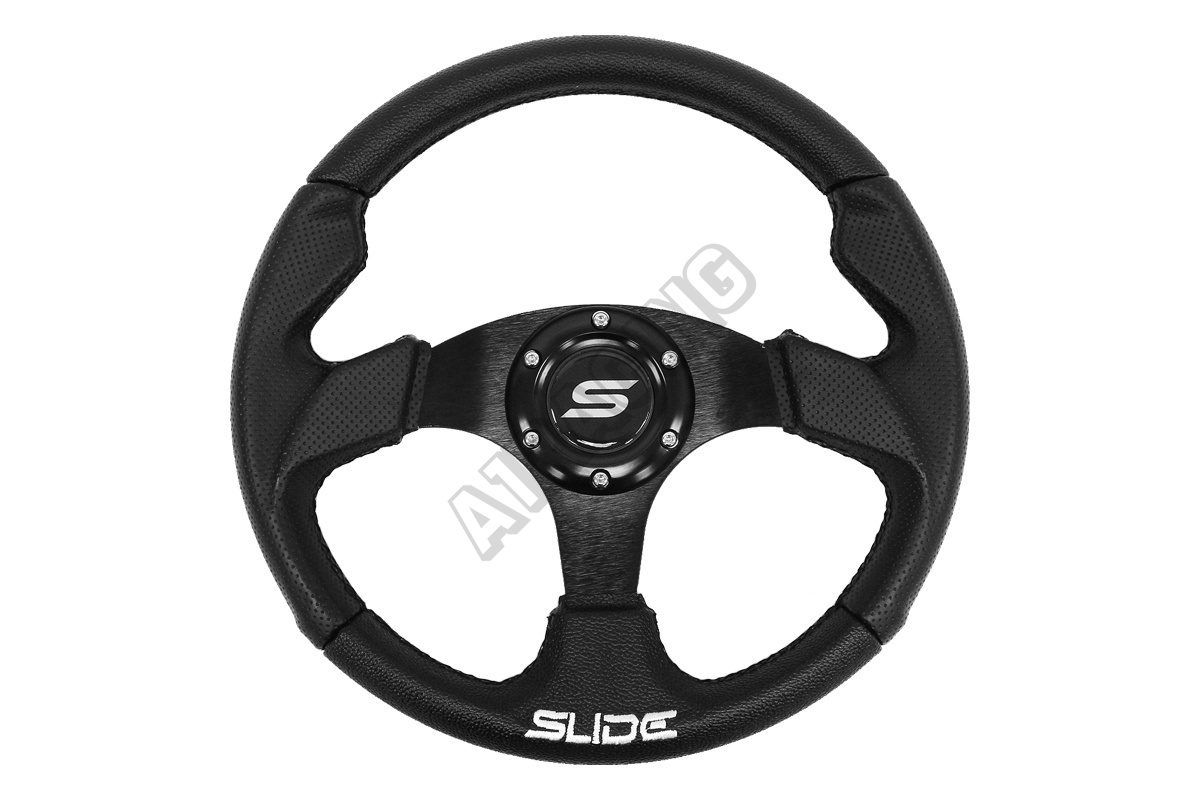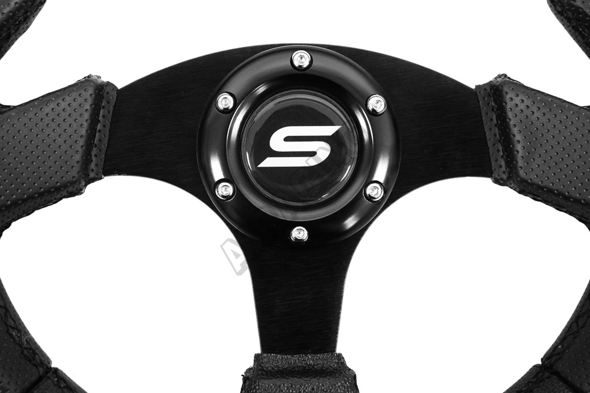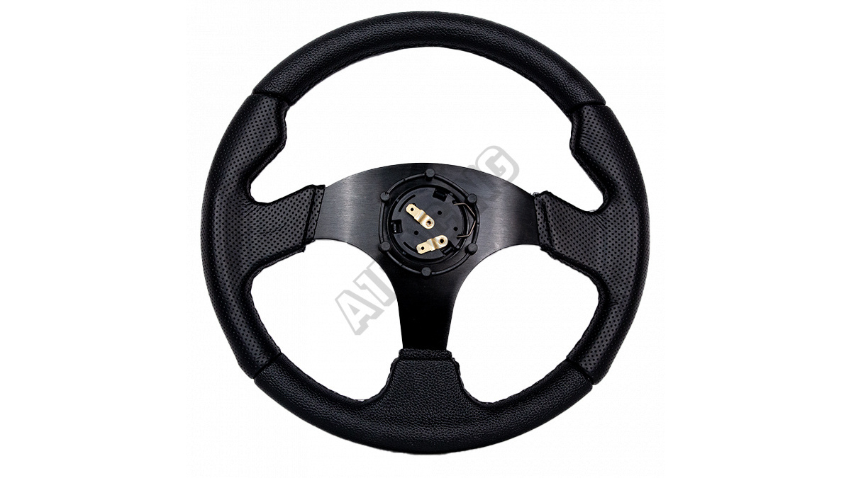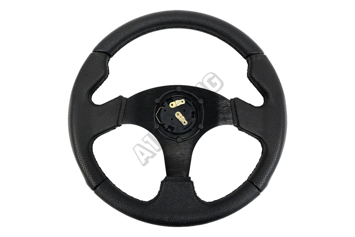 Sportovní volant kožený černý 320 mm Výška věnce je od středu 2 cm, průměr volantu 320 mm, šířka v