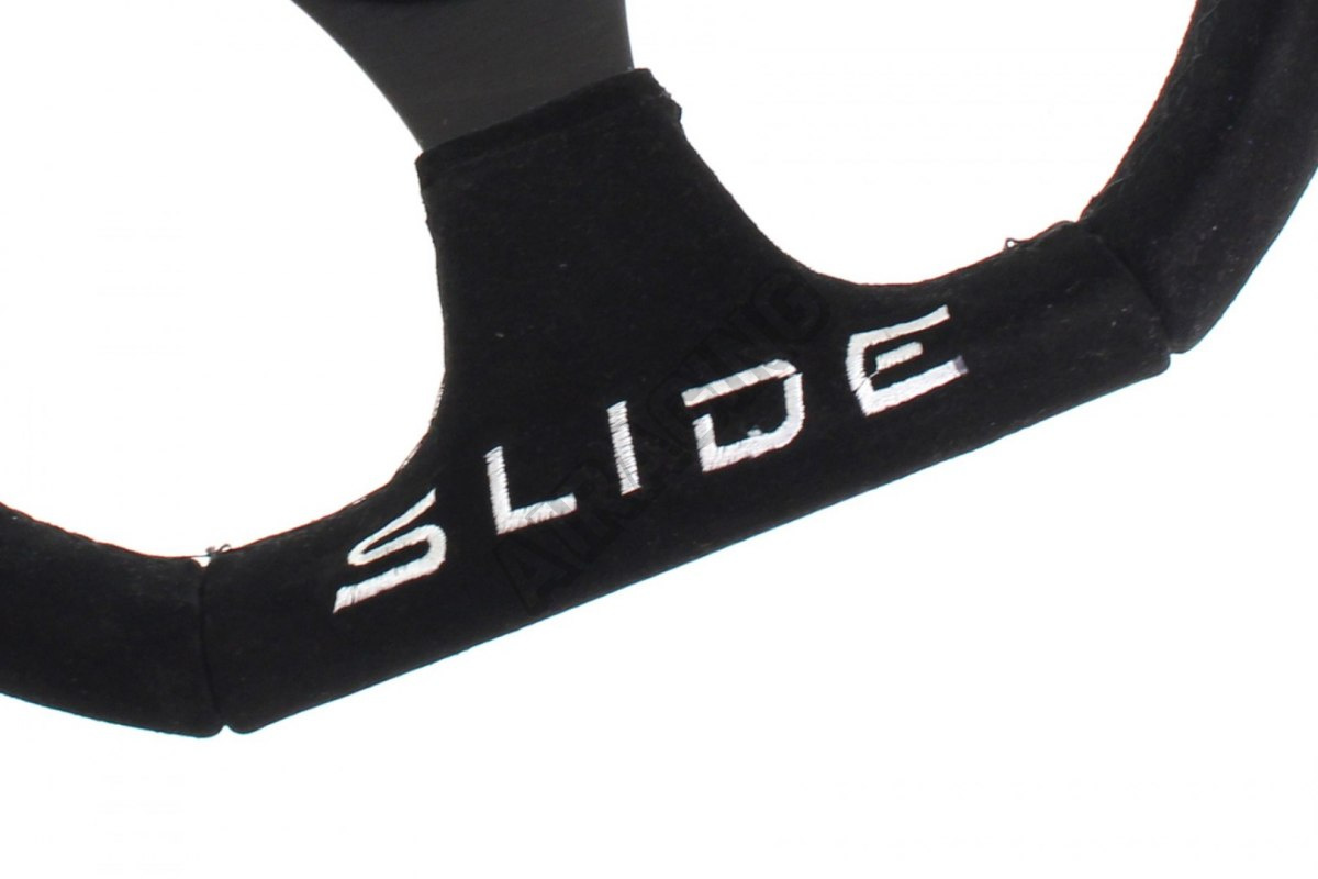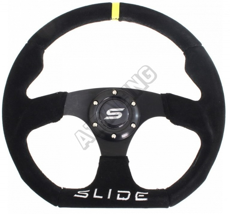 Sportovní volant SLIDE černý semišový 350 mm Průměr volantu 350 mm, šířka věnce 35 mm, 3 ramena, tu
