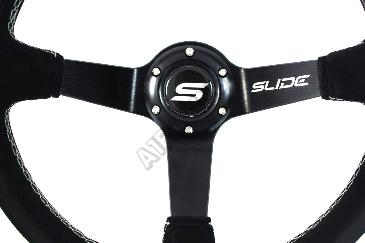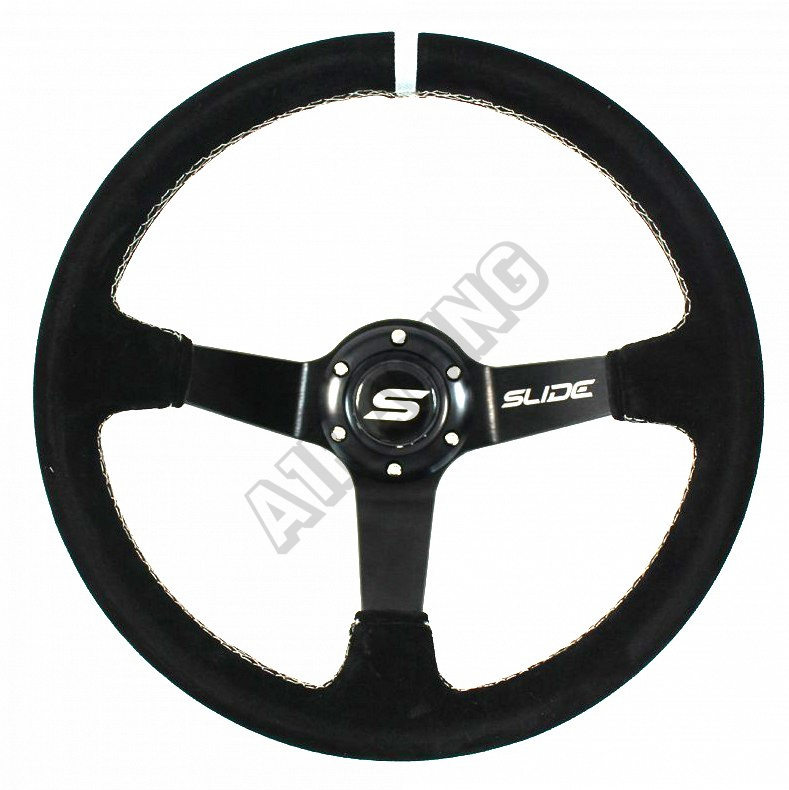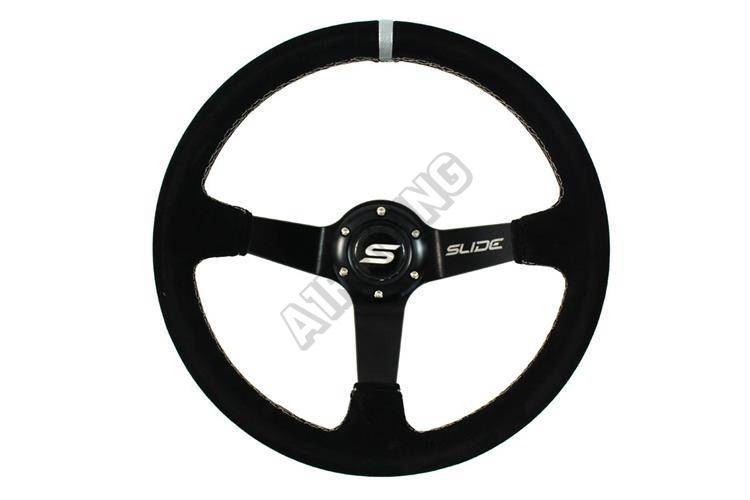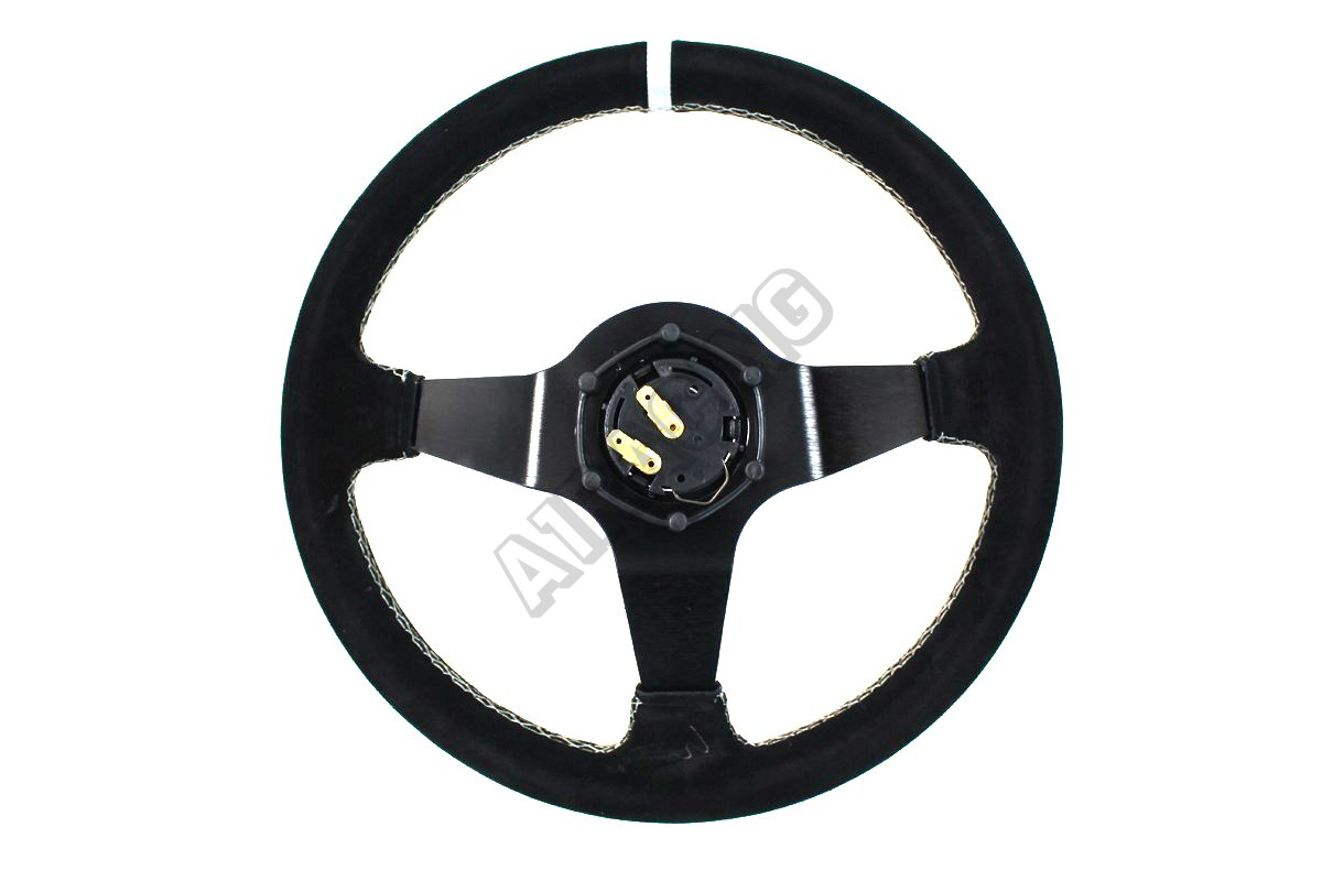 Kvalitní sportovní volant WRC ze sportovního semiše jako mají závodní auta. Určeno pro standartní 6 děrovou nábu o průměru 70 mm, střední část volantu o proti krajní je utopená o 80 mm.