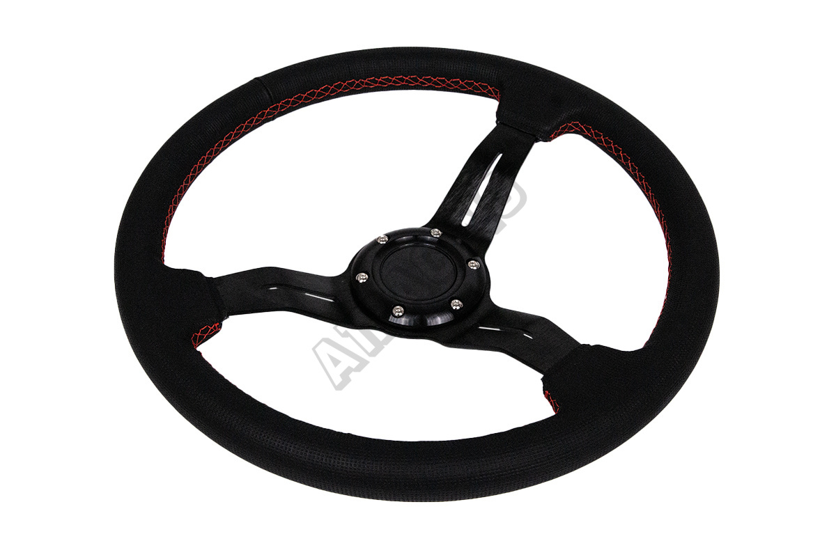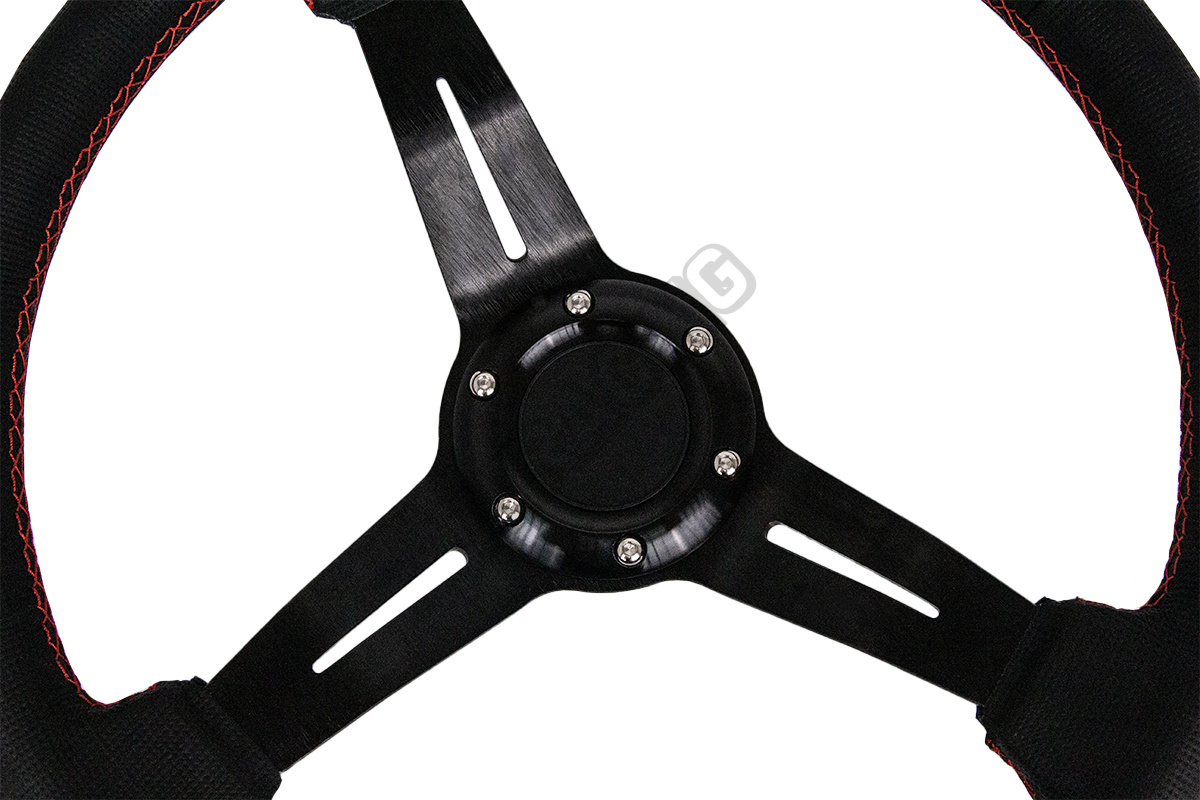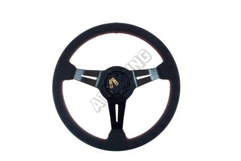 Kvalitní sportovní volant WRC ze syntetické kůže. Určeno pro standartní 6 děrovou nábu o průměru 70 mm, střední část volantu o proti krajní je utopená o 70 mm.