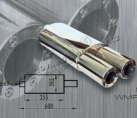 průměr koncovky 2x90mm, nerez provedení, masivní koncovky - viz foto v galerii, průchozí konstrukce - krásný sportovní zvuk,