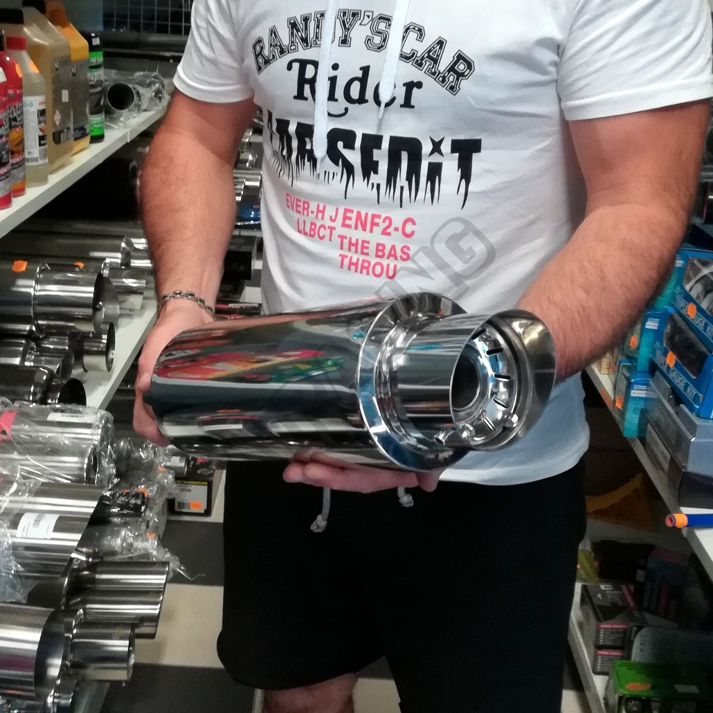 Nerez sportovní univerzální výfuk s nastavitelným silencerem v zadní části, kterým ještě můžete regulovat zvuk + - 7 Dcb. Rozměry výfuku jsou uvedeny v galerii fotek