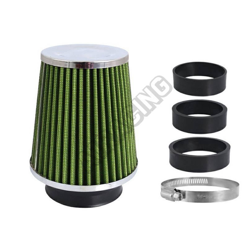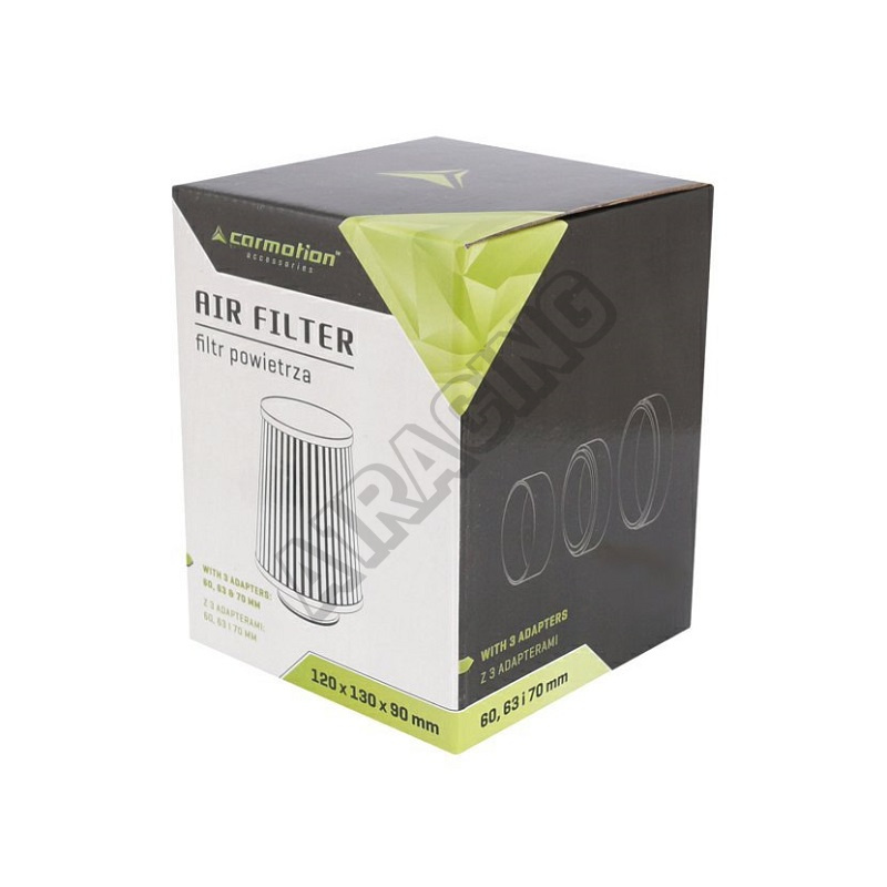 Kónický vzduchový filtr o velikosti 120x130x90mm, vyrobený s bavlnou, který je potažen síťkou s nerezovou ocelí. Dlouhá životnost je Zajištěná čištěním a údržbou. Díky dalšímu adaptéru můžete filtr přizpůsobit dvěma automobilům.