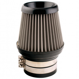 Universální sportovní vzduchový filtr kuželový - filtrace je z jemného nerez drátu. Zlepšuje proudění vzduchu, decentně způsobuje zvýšení výkonu a také zlepšuje sportovní zvuk motoru. Vyznačuje se dlouhou životností. Instalace na sponu je velmi jednoduchá Rozměry: Výška - 235 mm Šířka spodní - 165 mm Šířka horní - 155 mm, průměr pro nasazení 100, 90, 80, 70 a 60 mm (5 adaptérů)