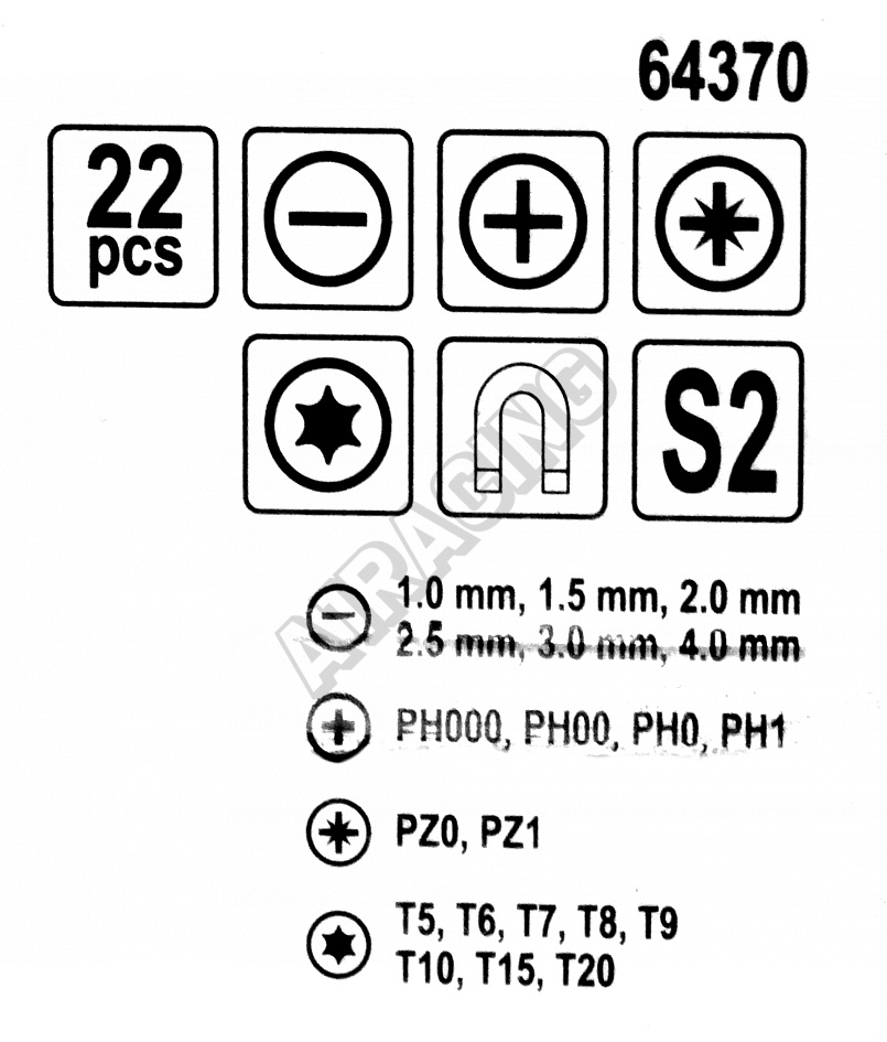 - bit TORX T5;T6;T7;T8;T9;T10;T15;T20