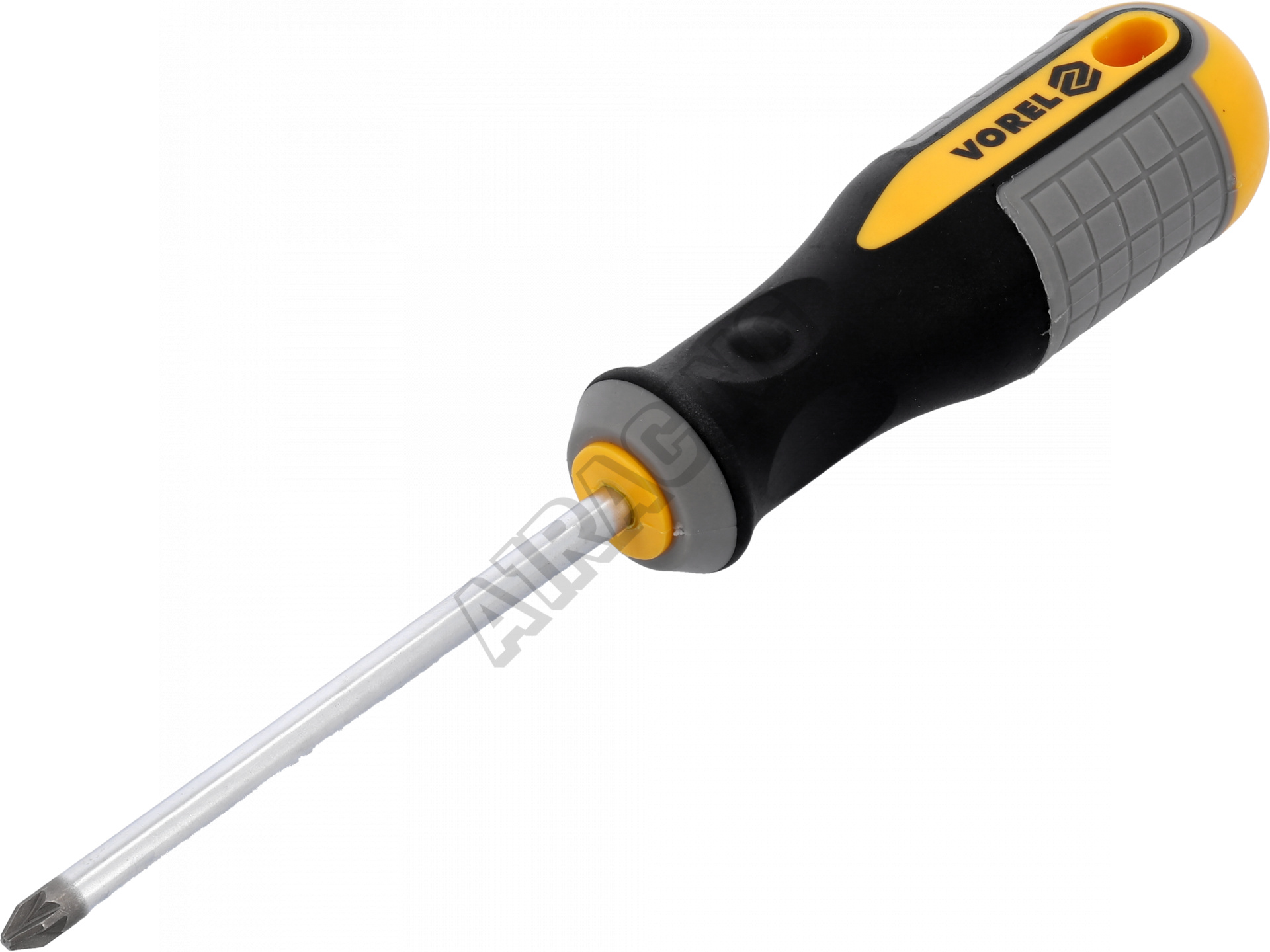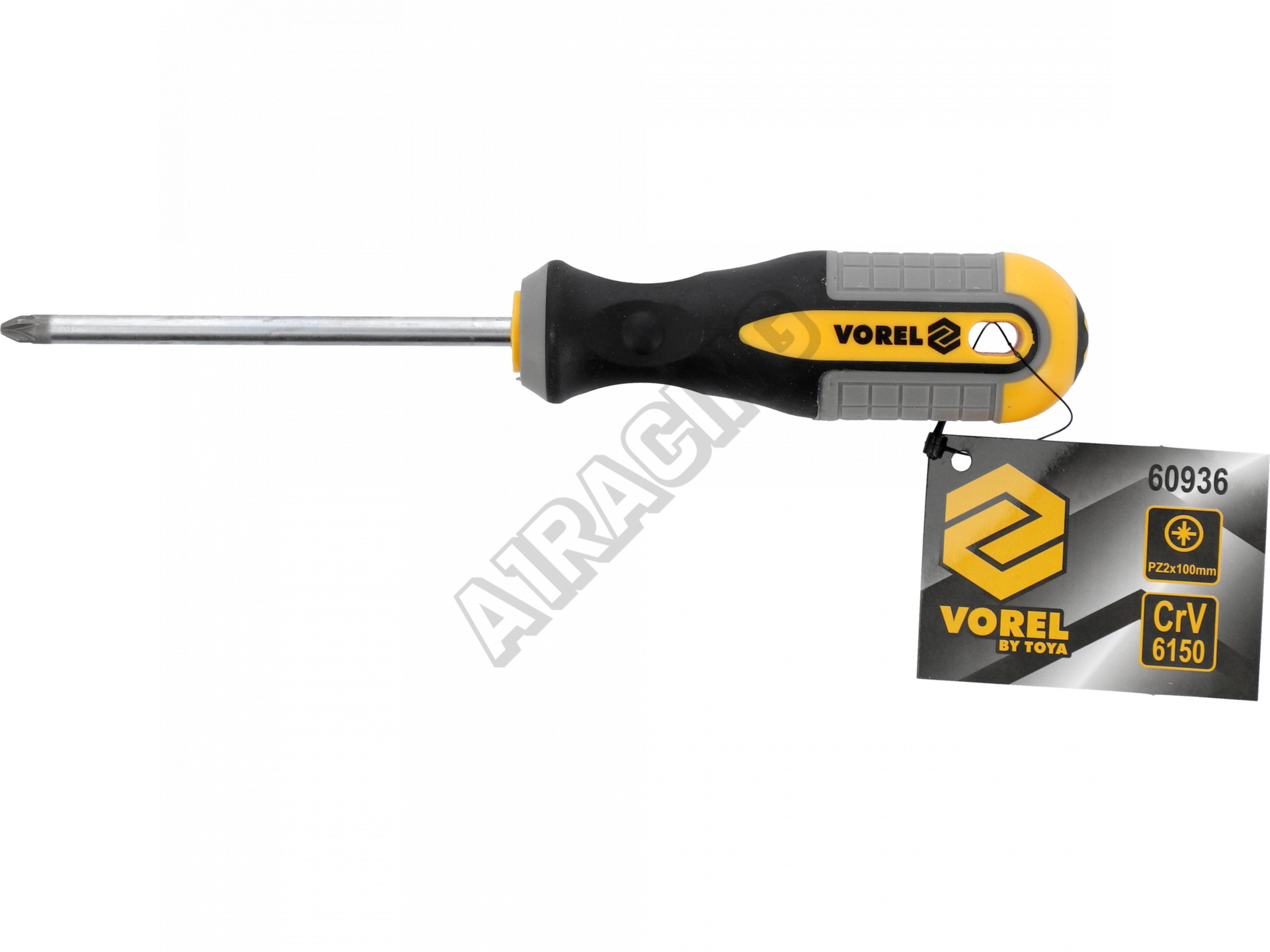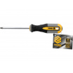 Křížový šroubovák PZ2 x 100 mm. Vyrobeno z CrV chrom-vanadiové oceli. Špička má saténový povrch, dodatečně pískovaná a magnetizovaná, což umožňuje pevné uchopení hlavy šroubu. Rukojeť je vyrobena ze dvou kompozitního plastu.