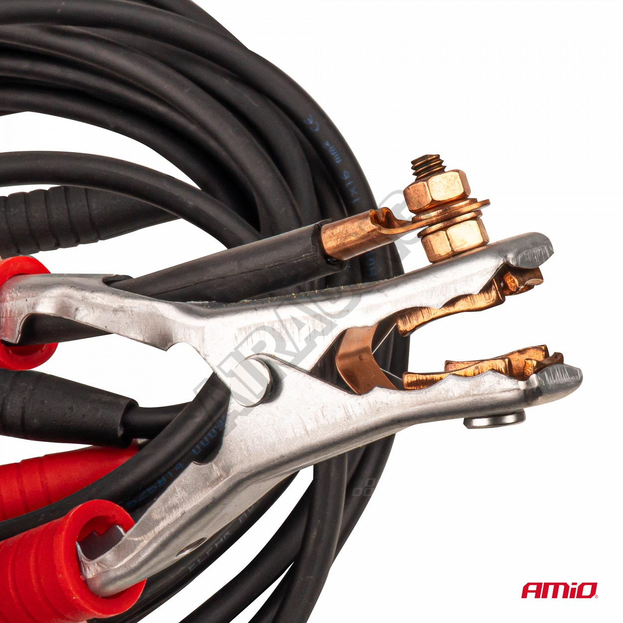Startovací kabely určené pro profesionální použití, vyrobené z vodičů s obsahem 99,9% mědi, zajišťující maximální vodivost a minimální ztráty napětí.