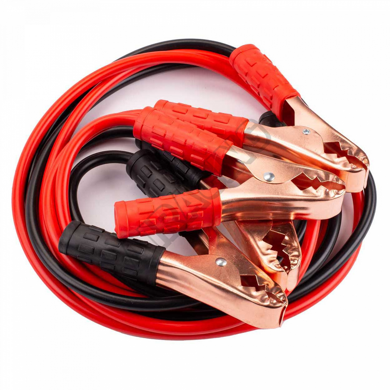 Měděné, barevně označené startovací kabely se svorkami na akumulátor. Max. proud 400 ampér, délka 2,5 metru .