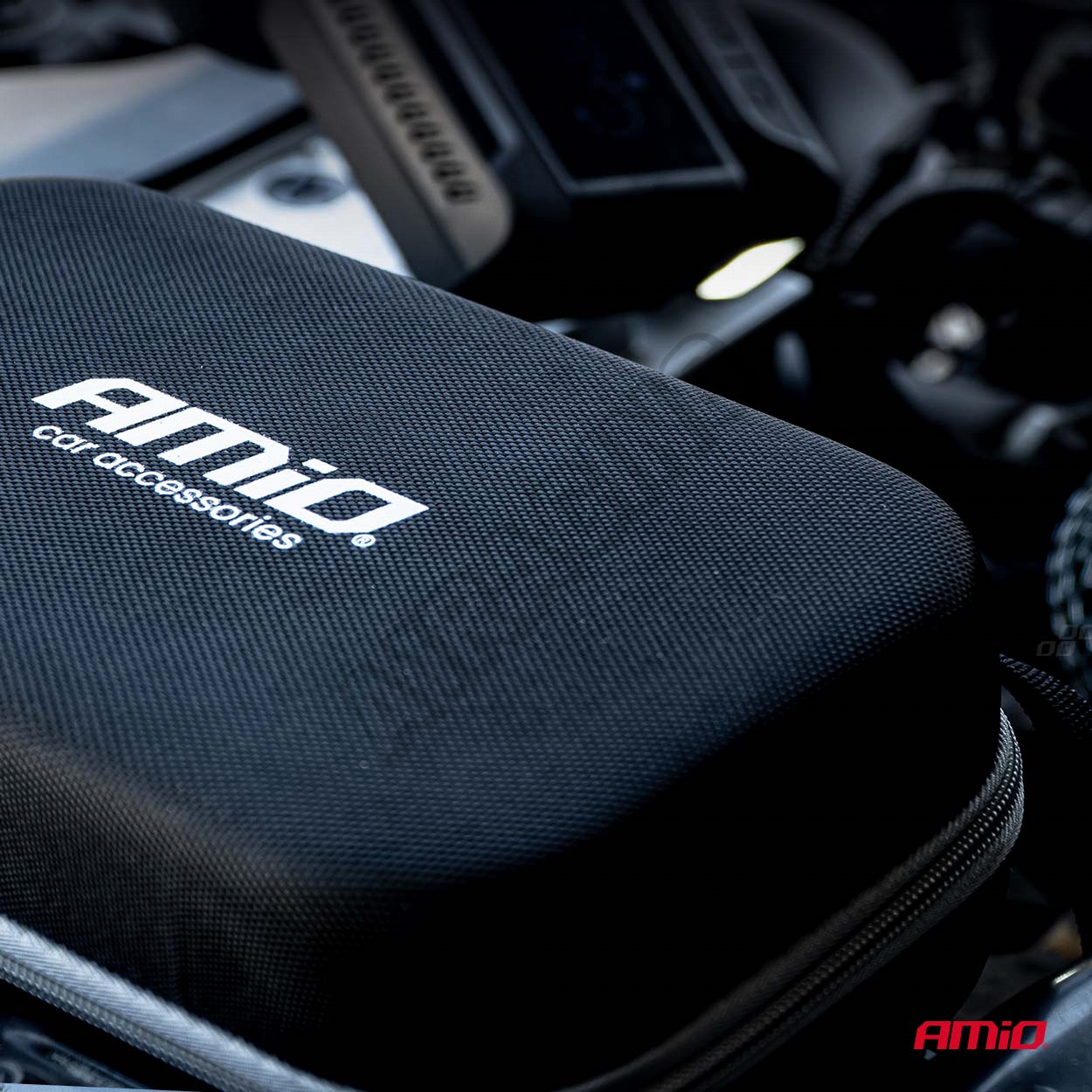 Startovací zařízení AMiO 4v1 12Ah je profesionální a multifunkční zařízení, které kombinuje funkce startovacího boosteru, powerbanky, vzduchového kompresoru a LED svítilny. Díky vysoké kapacitě akumulátoru a velkému startovacímu proudu se osvědčuje v nejnáročnějších podmínkách, jak v dílnách, tak při každodenním používání řidiči.
